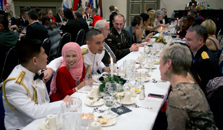 This formal year end celebration brings the International Officers, their families and sponsors together for a fine meal and a fun opportunity to show their dance moves. The variety of impressive dress uniforms are a sight to behold. This event is by invitation only and the student will host one of his sponsor families, the Fort's military sponsor, the Leavenworth sponsors or the Greater Kansas City People to People sponsors.